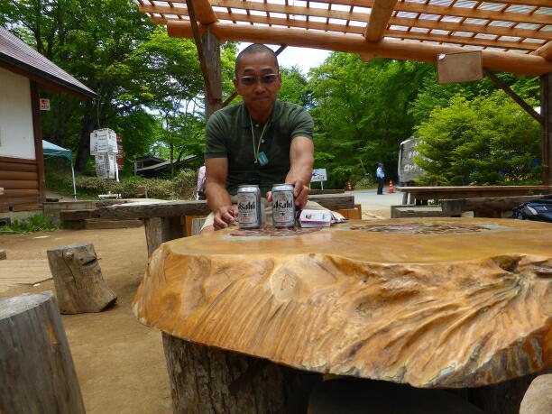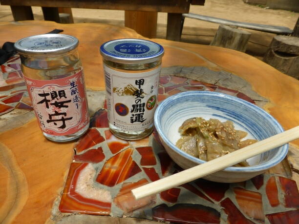 百名山の「大菩薩嶺」を早くも登り終えて、帰路のバス停で一杯。