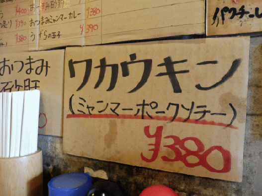 「ワカウキン」? 380円だし、無駄になってもいいからオーダーしてみた。ポークソテー