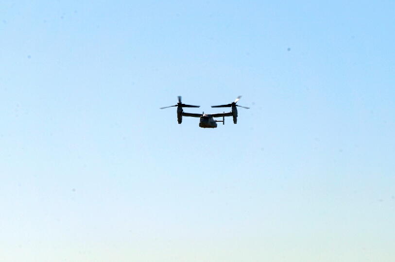 手提げに受信機持っていたのでグランドという周波数に合わせてスイッチ入れたら、「オスプレー」だって。