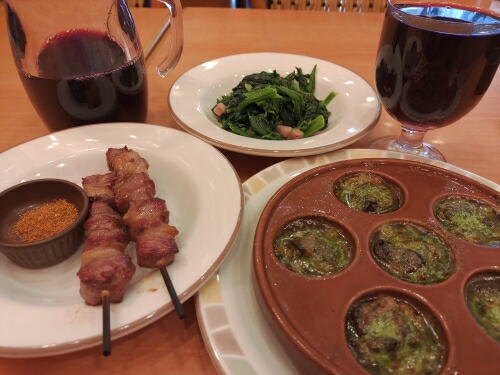 ワインのデキャンタは400MLで400円也。アテはこの3品以外は不要です。〆て1400円