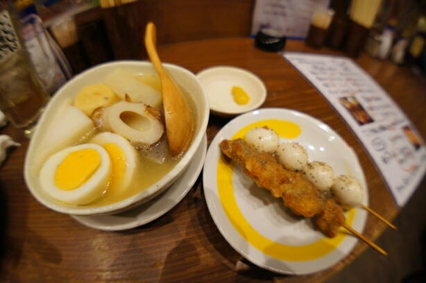 煮込みは甘くて「NGだ、こりゃ」。頼みの串は売り切れだって。