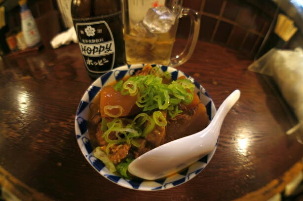 結構強気な価格590円の牛モツ煮込み。これは美味い! 何処の「モツ煮」も甘いけれど、