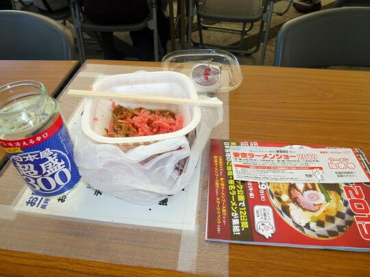 一杯始めるが、既に駅前で購入した牛皿も冷め気味に。