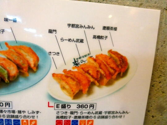 宇都宮餃子の人気店の餃子を1個づつ盛り合わせる組み合わせの1皿です。E皿は