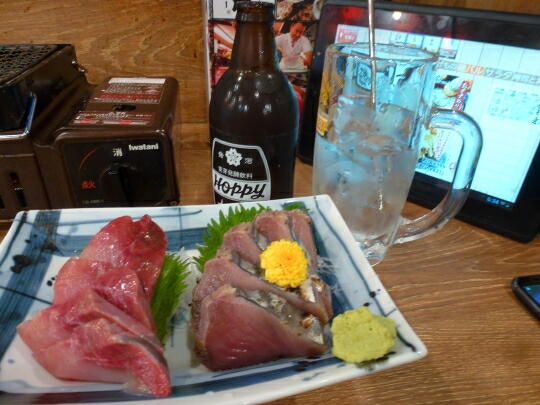 刺し盛だと好みが合わないので、単品を2品。ずばり、ハマチとカツオ。