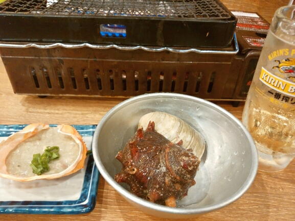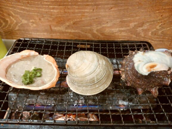 「焼き」も単品で注文。ボンビノスもサザエも巨大です。