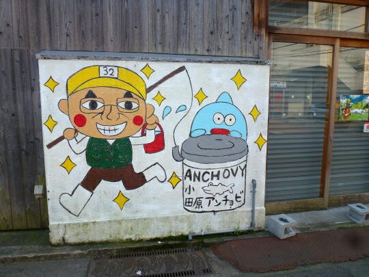 早川の漁港に描かれた芸術作品です。