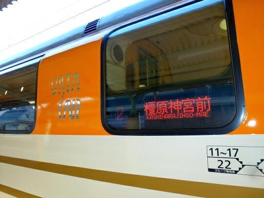 「橿原神宮前」に着きました。ここで乗り換えです。在来線も、いかにも関西っぽくて新鮮に