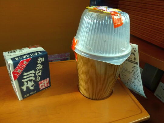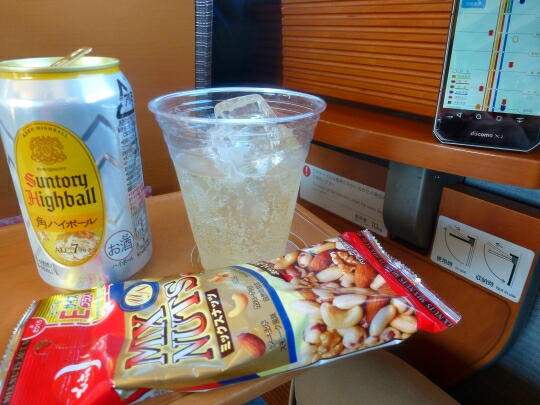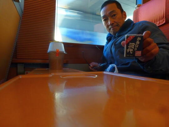 あっと言う間に飲み食い終っちゃいましたね。車内販売の「乾杯セット」500円也です。
