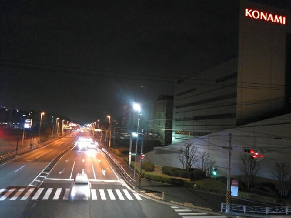朝6:29。我が家の庭の温度計、氷点下です。この日は自宅から歩いて移動。夜明け前の国道