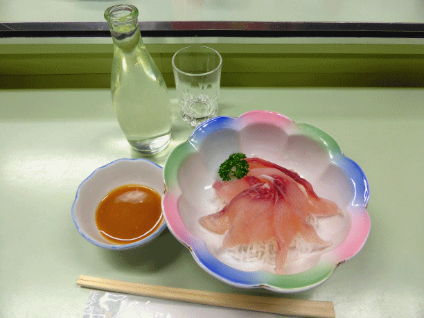 居酒屋は非常に珍しいです。コイの洗いは400円。