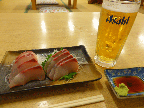 待ってました。風呂上がりの一杯です。刺身定食のご飯抜きを快くやってくれました。あとは