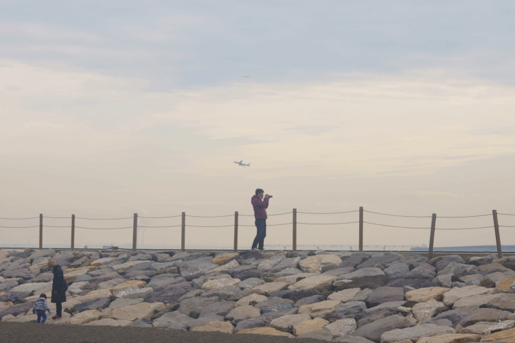 旅客機の発着を見ながらの一杯。ちょっと飛行機が遠いですが、急上昇してゆく姿は感動します。