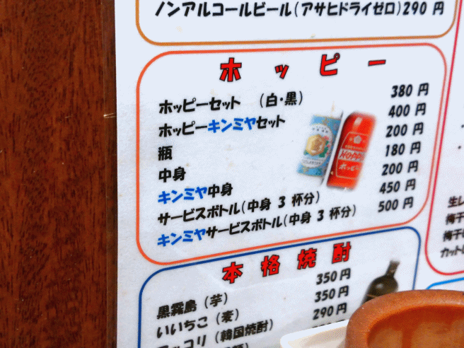 「キンミヤ」なんて要らないので、サービスボトルのなか3杯は450円也。我が経験で最安値。