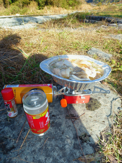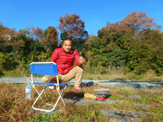 11月半ば、良い季節です。鍋と燗酒、夏とは違った野外朝飲みです。