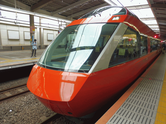 僅か2ヶ月前にデビューした新型ロマンスカーに乗りたくて朝飲みの場に選んだ。まだ