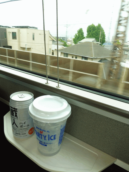 ほんの僅かであるがシートが窓を向いている。居酒屋と違って持ち込みは安いです。