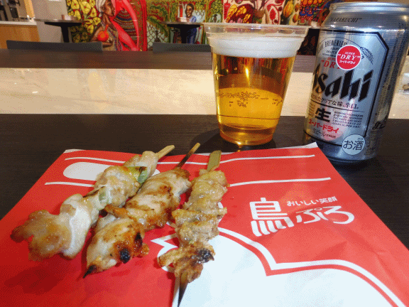 焼き鳥とフライドチキン。我が好物で朝から一杯でした。とにかく巨大なフードコート。