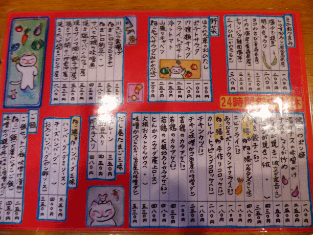 れば、そこが「ねこ膳」だ。面白い店名だ。看板も、店内メニューも「さくら ももこ」っぽい画風