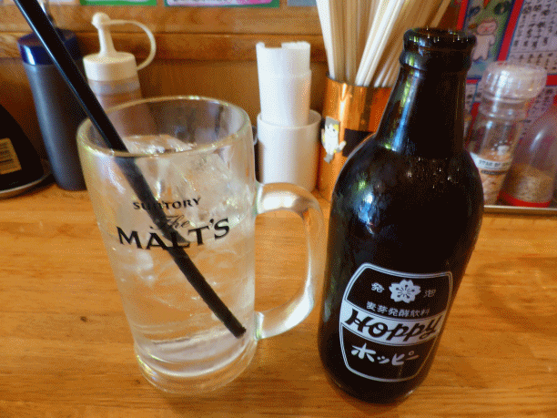 まずはビールセット。これで600円也。安いねえ。チャージも要らないし。ホッピーもこの量。