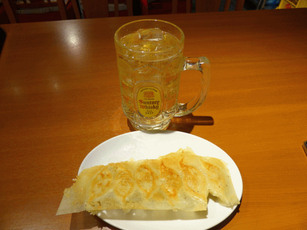 これでメガかよ。中ジョッキのハイボール790円也。焼き餃子は300円。少し油ぎってたか