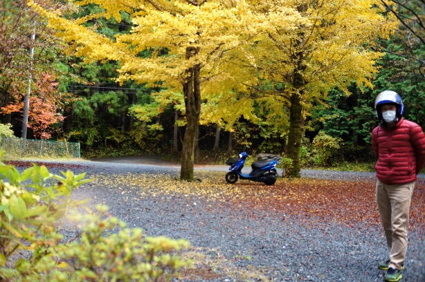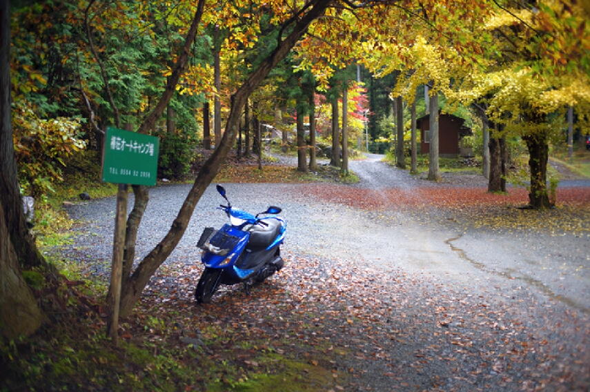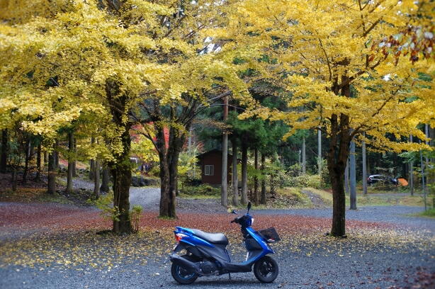 静かなキャンプ場。イチョウの黄色とモミジの赤が最高の色づきでした。