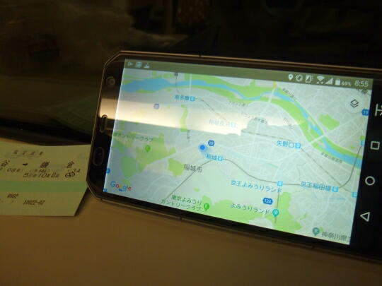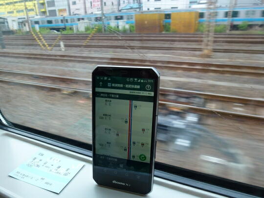 「西国分寺」を出ると、次の停車駅は何と横浜駅。この辺りから地下に潜るので、スマホの位置情報をオン。