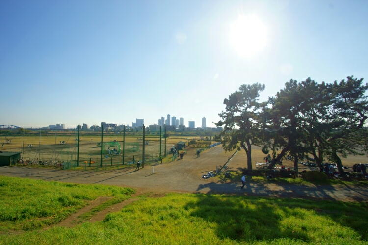 多摩川グランドの、土手を挟んで下ると「小池商店」があった。2016年の撮影日現在、立派な建物になってい