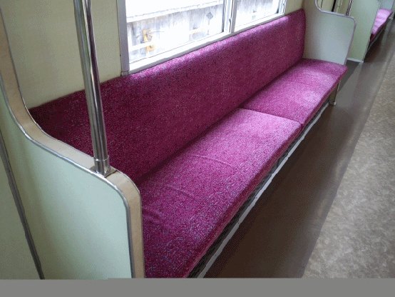 座席横の仕切りはパイプによるものではなく、木目調の化粧板を貼った板状のもで、当時は