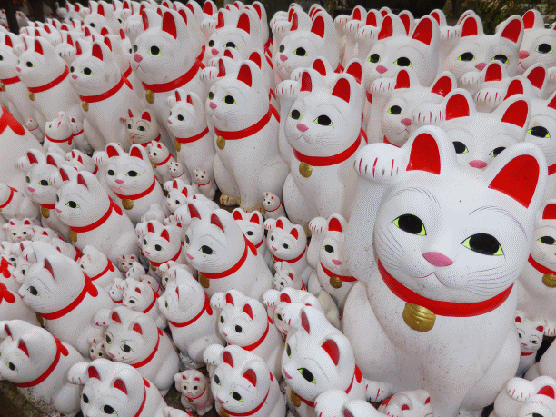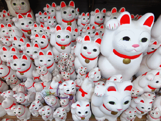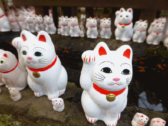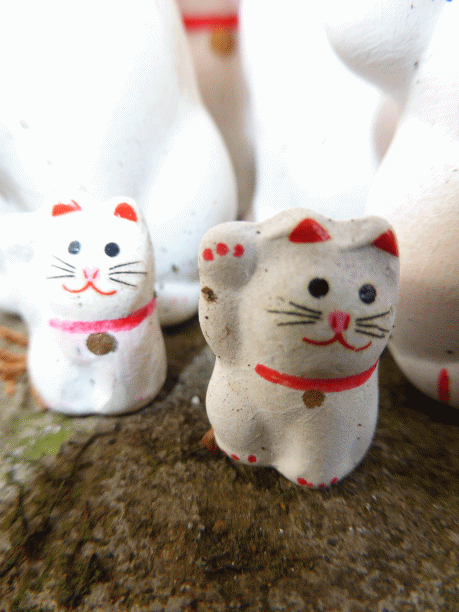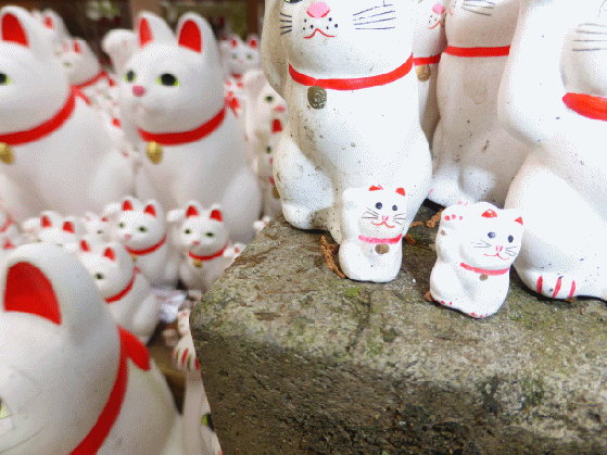 これだけ数並ぶ招き猫ですが、どこか普通のと違うんですよね。わかった! 飾りっ気が無