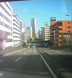 青空をバックに、進行方向の真っ正面にこのビルがそびえ立つスポットの紹介です。街道の